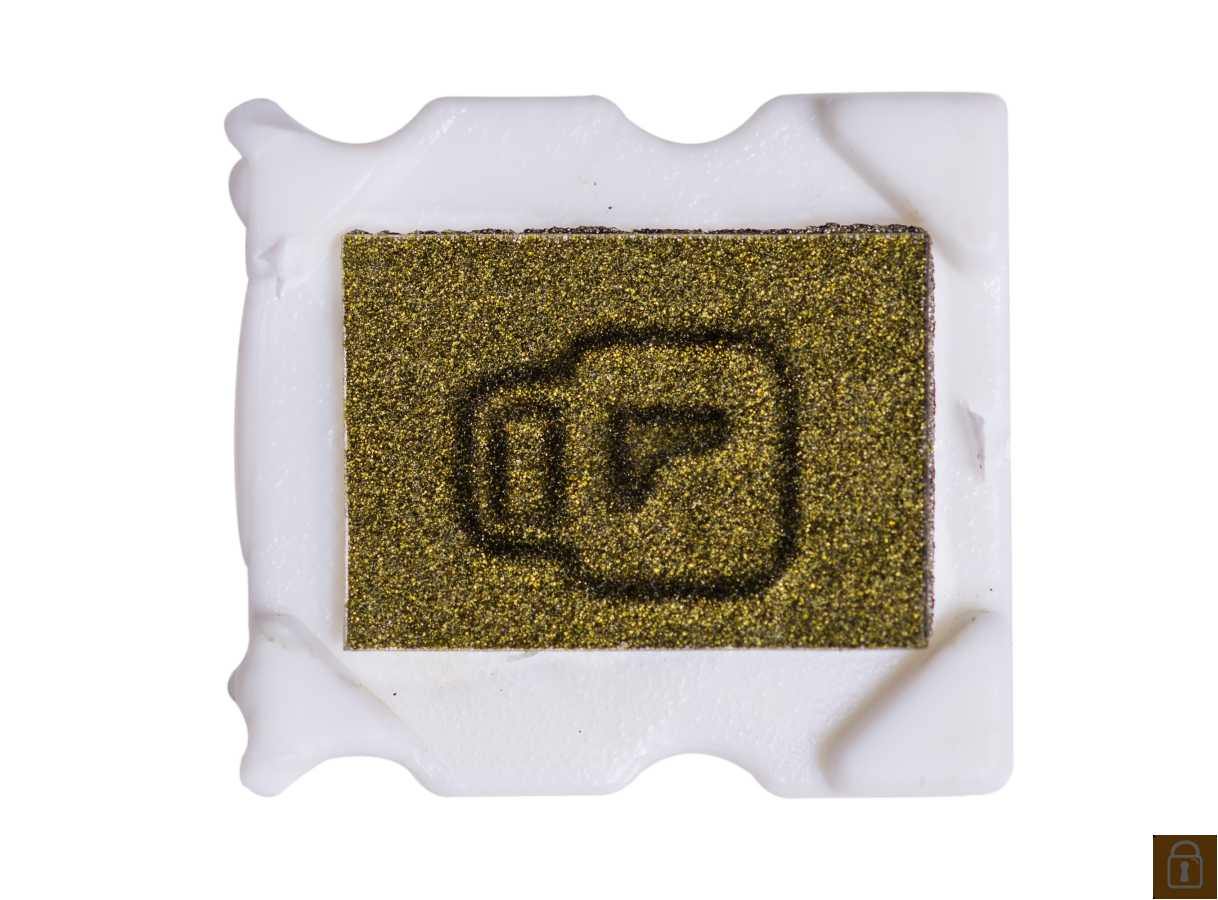 Встроенный высококачественный антимагнитный индикатор с порогом чувствительности не более 0,50 мТл (необратимое разрушение защитного рисунка наступает при воздействии поля менее 20 мТл) логотип выполнен в виде «замка» — являющегося эмблемой компании-производителя, индикатор надёжно зафиксирован в нише элемента «защёлка» внутри корпуса пломбы. Конструкцией пломбы полностью исключена возможность подмены антимагнитного элемента. Разработанная технология создания изображения позволяет оперативно наносить любое изображение на антимагнитный индикатор по желанию заказчика. Данная технология даёт возможность индивидуализации пломб и повышает их криминальную стойкость.