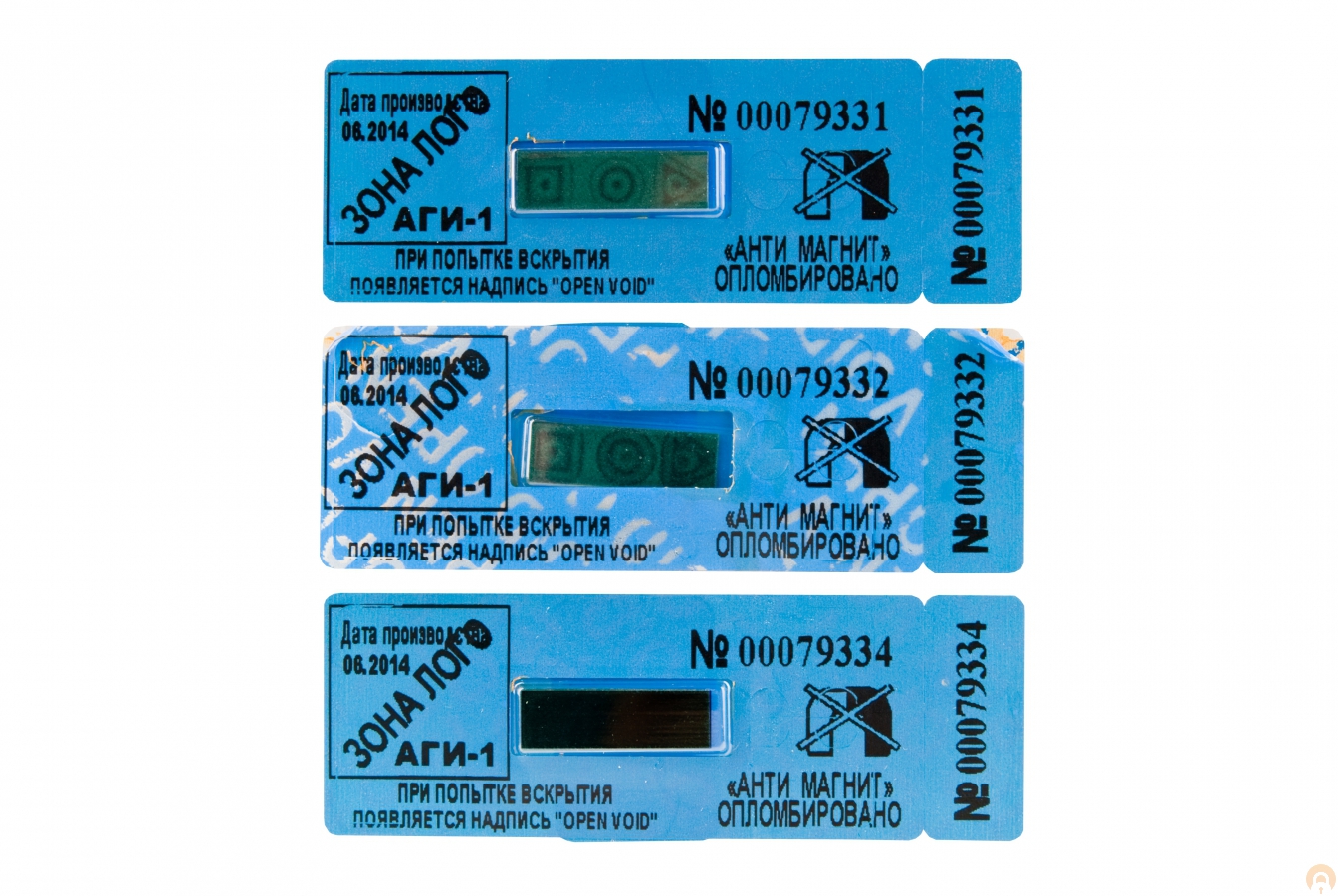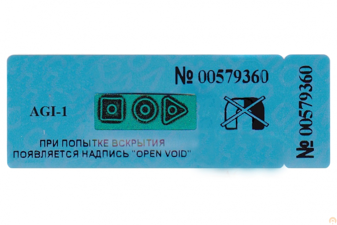 Попытка отклеить пломбу приведет к проявлению текста «OPEN VOID» и приведению пломбы в негодность. Контур пломбы надрезан миниатюрными рисками вызывающими различимую деформацию пломбы при отклеивании.