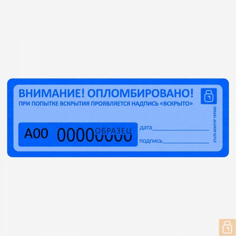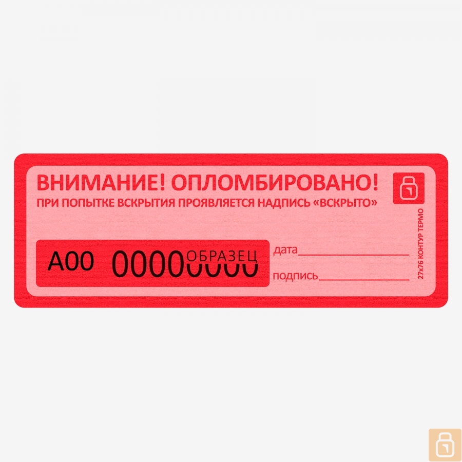 С целью идентификации на наклейку по уникальной технологии наносится индивидуальный номер: срыв пломбы оставляет на поверхности отпечаток ее номера. Кроме того, по Вашему заказу наклейки могут быть промаркированы штрихкодами и логотипом.