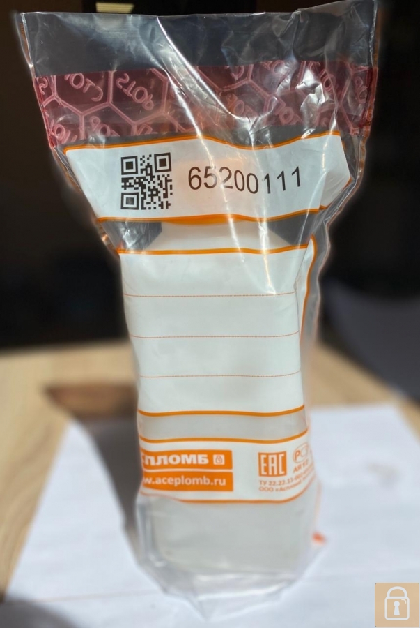 Сейф-пакет, формат 173*360 мм — удобное решение для пломбирования бутылок, канистр с пробами объемом до 1 л.