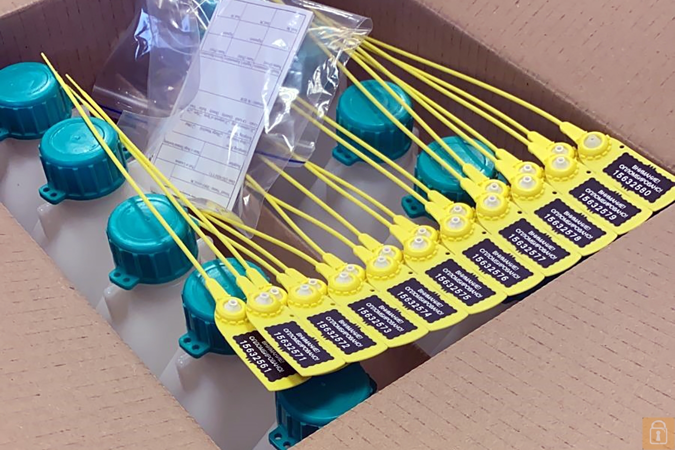 Набор №1 комплектуется 10 бутылками, с персональными этикетками и пластиковыми номерными пломбами (1 пара на бутылку); Пробы герметично запираются в бутылке, фиксируясь при помощи пластиковой пломбы, при вскрытии пломба необратимо разрушается.