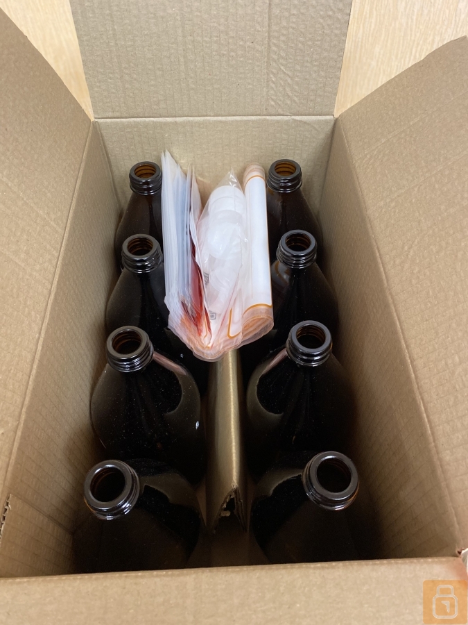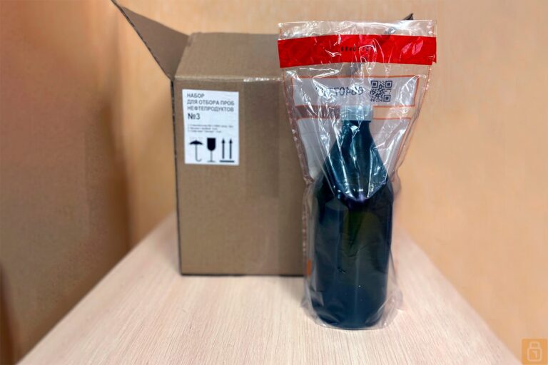 Набор для отбора проб нефтепродуктов №3 комплектуется 9 бутылками из тёмного стекла марки БВ-1−1000, крышками с пробкой и номерными сейф-пакетами.